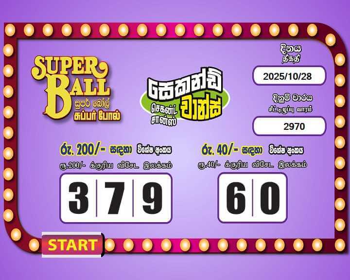 Development Lottery Board Super Ball 28 October 2025 Draw Number 2970 results. Super Ball 28/10/2025 Lottery Results. Super Ball 2025.10.28 Wining Numbers. 2025-10-28 Online Lottery Results