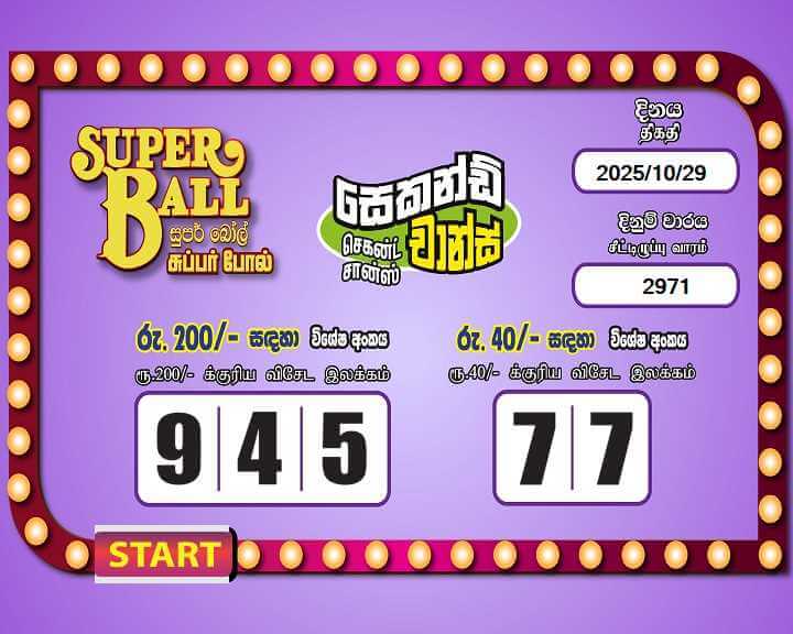 Development Lottery Board Super Ball 29 October 2025 Draw Number 2971 results. Super Ball 29/10/2025 Lottery Results. Super Ball 2025.10.29 Wining Numbers. 2025-10-29 Online Lottery Results