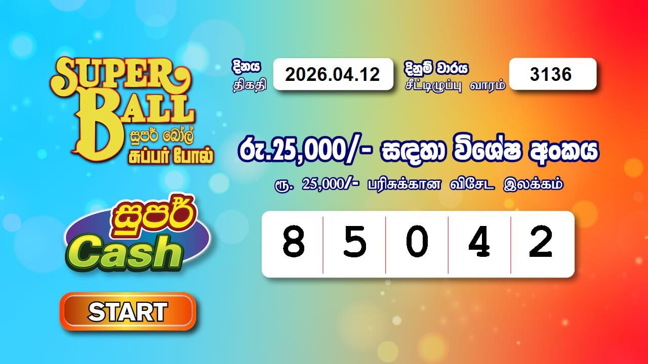 Development Lottery Board Super Ball 12 April 2026 Draw Number 3136 results. Super Ball 12/04/2026 Lottery Results. Super Ball 2026.04.12 Wining Numbers. 2026-04-12 Online Lottery Results